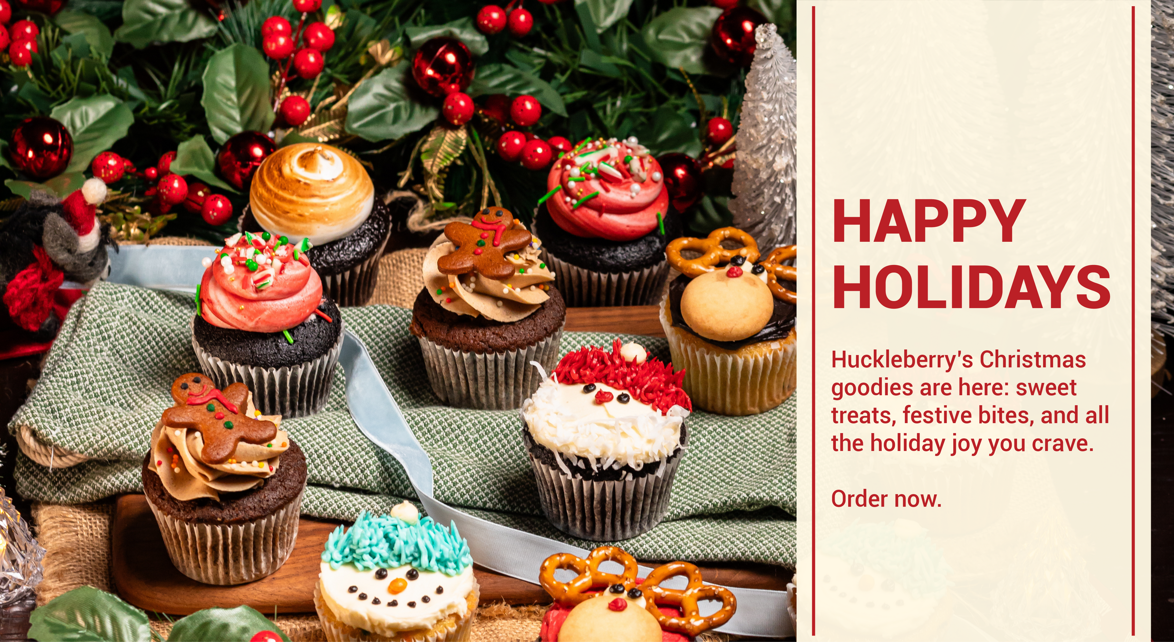 Huckleberry’s Christmas goodies are here: sweet treats, festive bites, and all the holiday joy you crave. Order now.