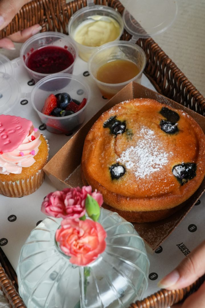 This Mother’s Day, surprise Mum with a little morning magic. A soft stack of blueberry hotcakes served with maple butter sauce, fresh-cut fruits, custard, and our homemade raspberry sauce. Paired with a little sweet treat on the side, our “I Love Mom” cupcake.