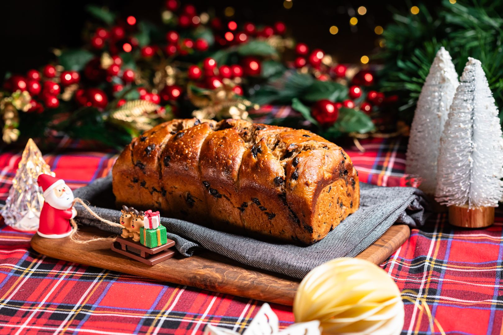 Soft brioche studded with a medley of dried fruits like sweet raisins, tart blackcurrants, juicy cranberries, tender apricots, orange peels, chocolate chips and a hint of cinnamon.